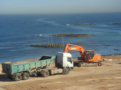 In the last two days our beach area has been partially been concreted with the addition of a wall of libyan china style great wall as the joke is said . If that wasnt enough ,now something else is cooking and no one knows what ;leaving all to beleive to know the latest when actually this top secretive is an unknown fact to even those working on the project....